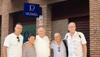 Imágen a la salida de la Notaría tras la firma de nuestros compañeros Gerardo y Elsa acompañados por su hijo, nuestros Secretario Nacional Don Valentín Hernandez Saro y Ángel Valentín Campos Pavón.